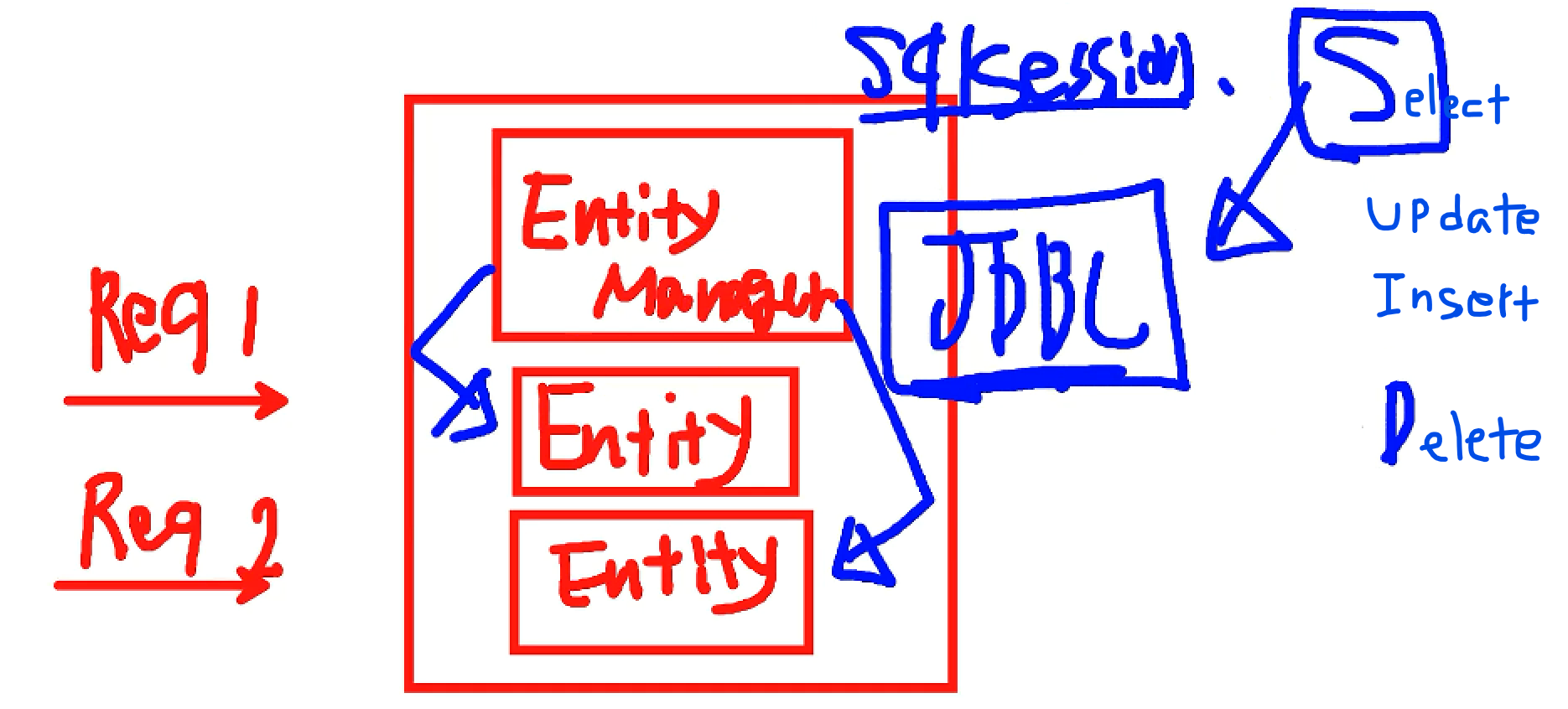 jpa의 구현체가 hibernate > hibernate는 sqlsession 사용 > sqlsession에서는 jdbc를 사용 !