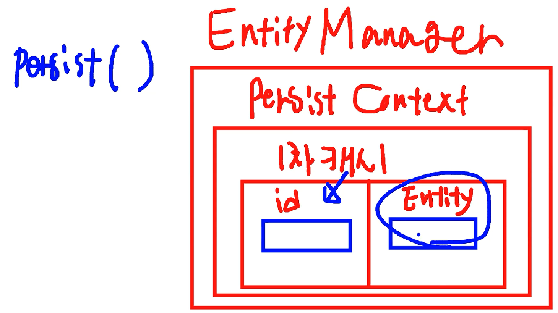 insert > persist("엔티티") > "엔티티"가 persistenceContext안에 들어가게 된다. > 영속 컨텍스트