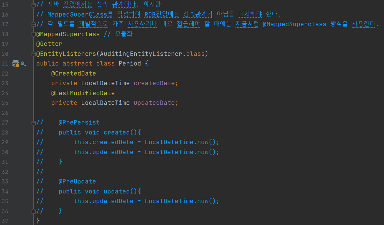 @EnableJpaAuditing 을 붙여주어서 spring한테 auditing 허락을 받아야 사용가능하다.