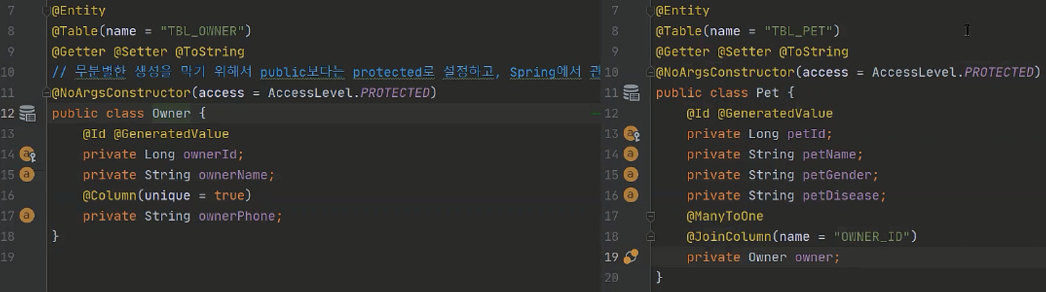 pet은 여러마리고 owner 1명 >> @ManyToOne