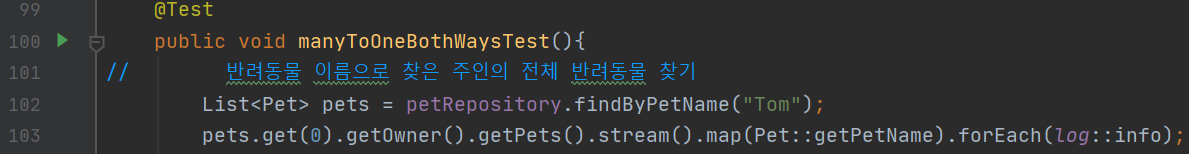 양방향이기 때문에 getOwner().getPets()가 가능함.