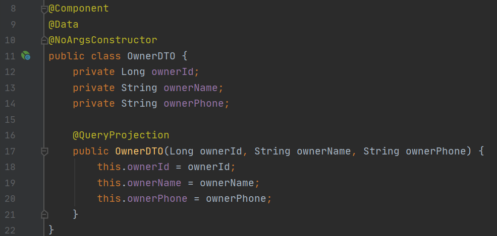 queryDsl은 dto에 생성자위에 @QueryProjection붙이면 된다.
