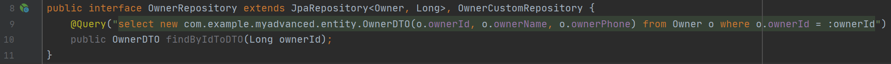 엔티티를 기준으로 결과를 조회했을 때 조회한 결과를 바로 DTO에 넣어서 DTO로 리턴을 한다.