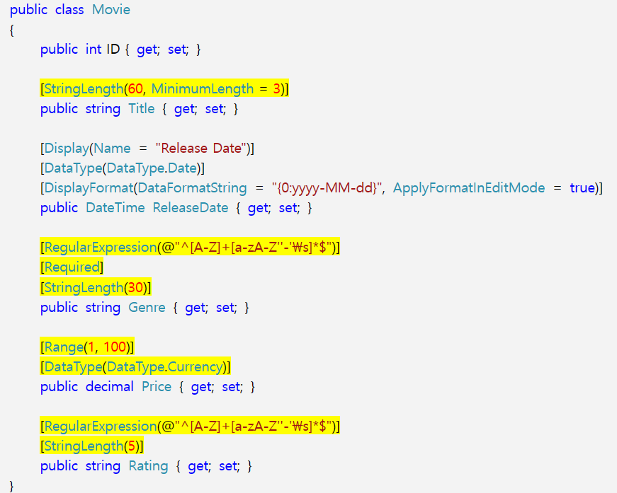 (using) System.ComponentModel.DataAnnotations << namespace가 지정되어 있는 것을 볼 수 있다.