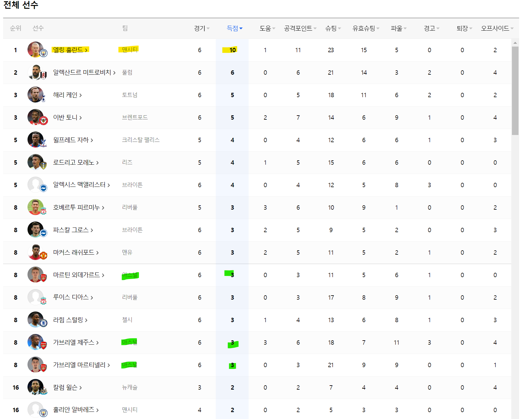 순위도 공동순위가 너무 많고,, 1골 넣은 사람은 모두 34위였다....(두통)