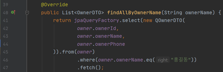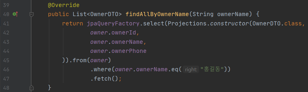 엔티티를 기준으로 결과를 조회했을 때 조회한 결과를 바로 DTO에 넣어서 DTO로 리턴을 한다.